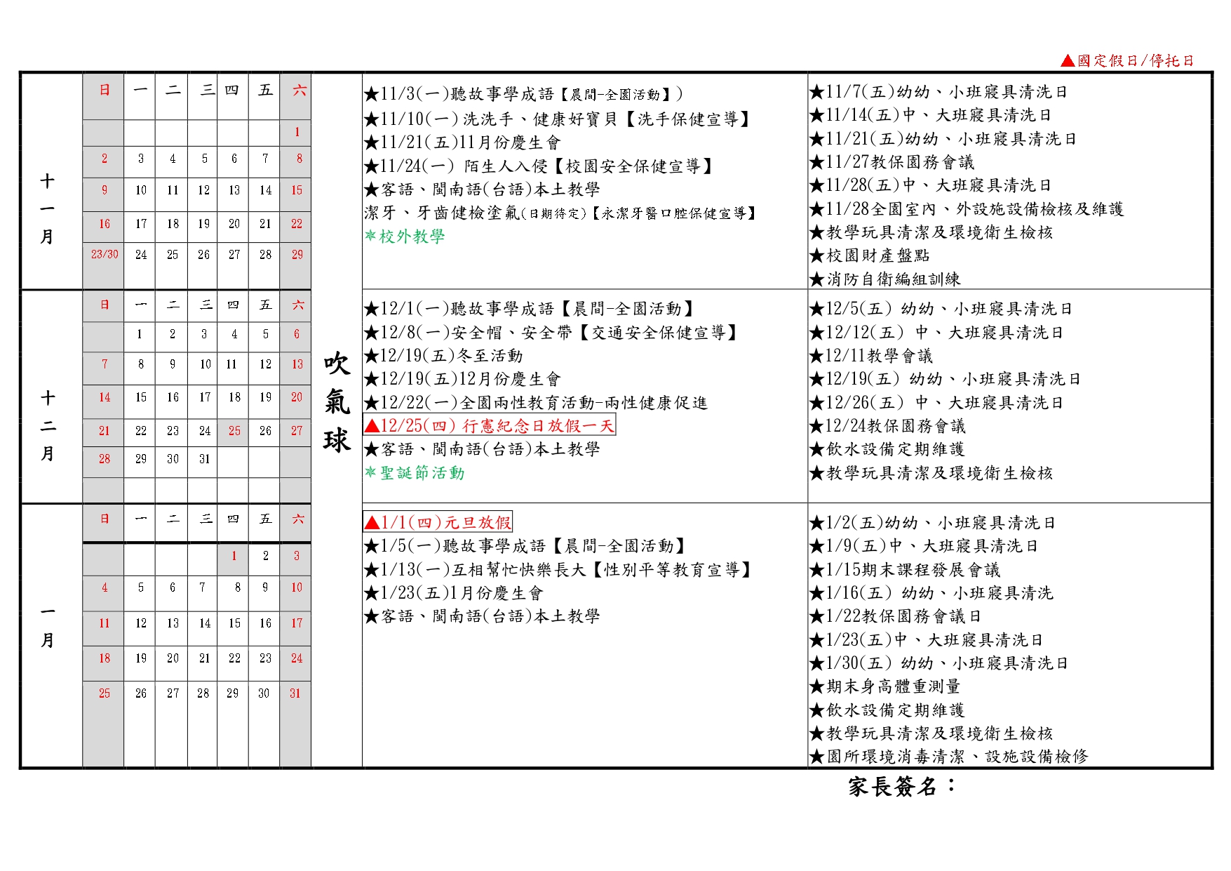 幼兒園公告