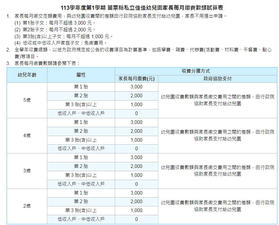 一、公立幼兒園:依幼兒就讀當日起算,按家長每月平均繳交費用及當